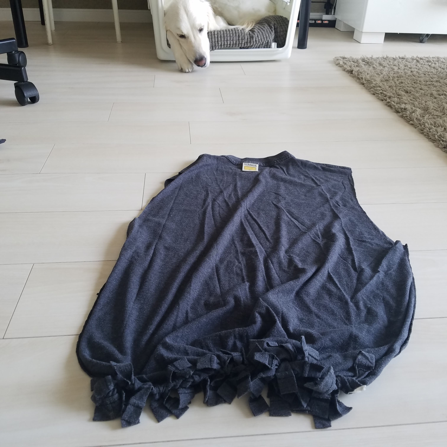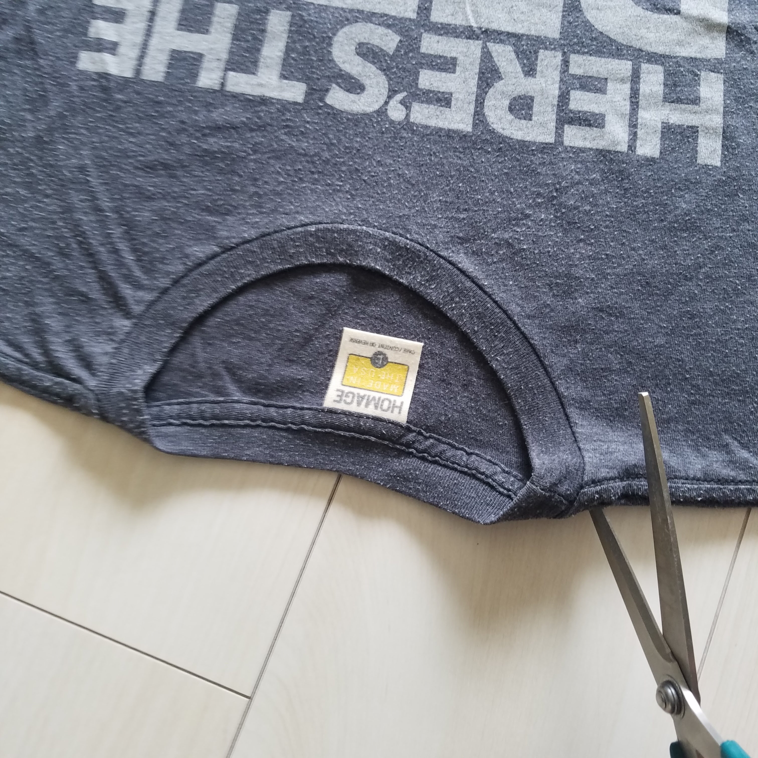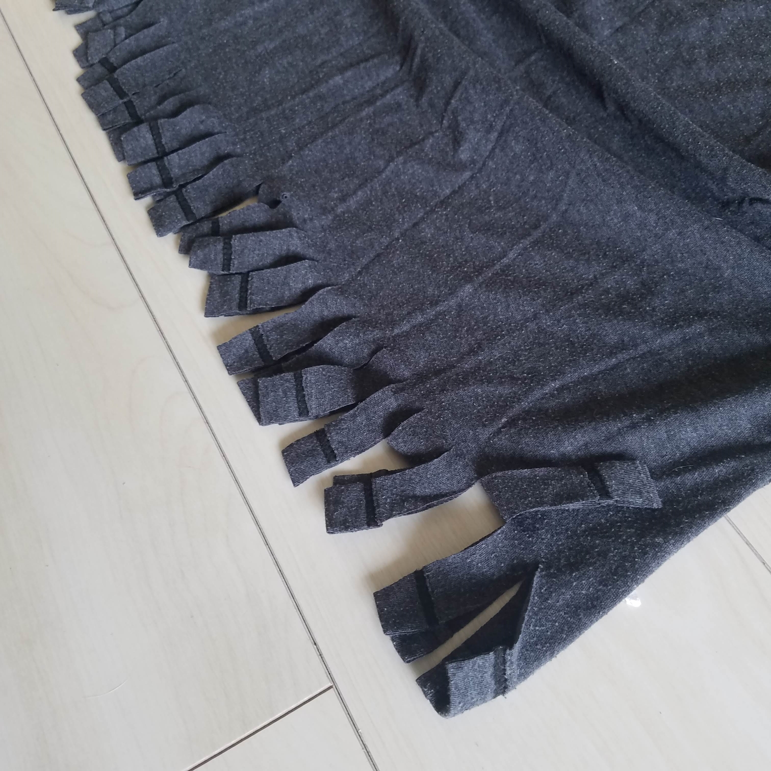 Step 4: Flip the shirt INSIDE OUT and cut 3-4 inch (7-9cm) slits in the bottom of the T-shirt, making "tassels."