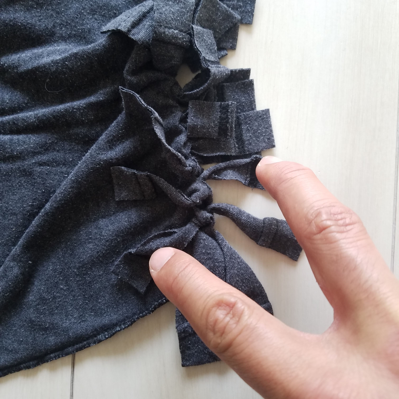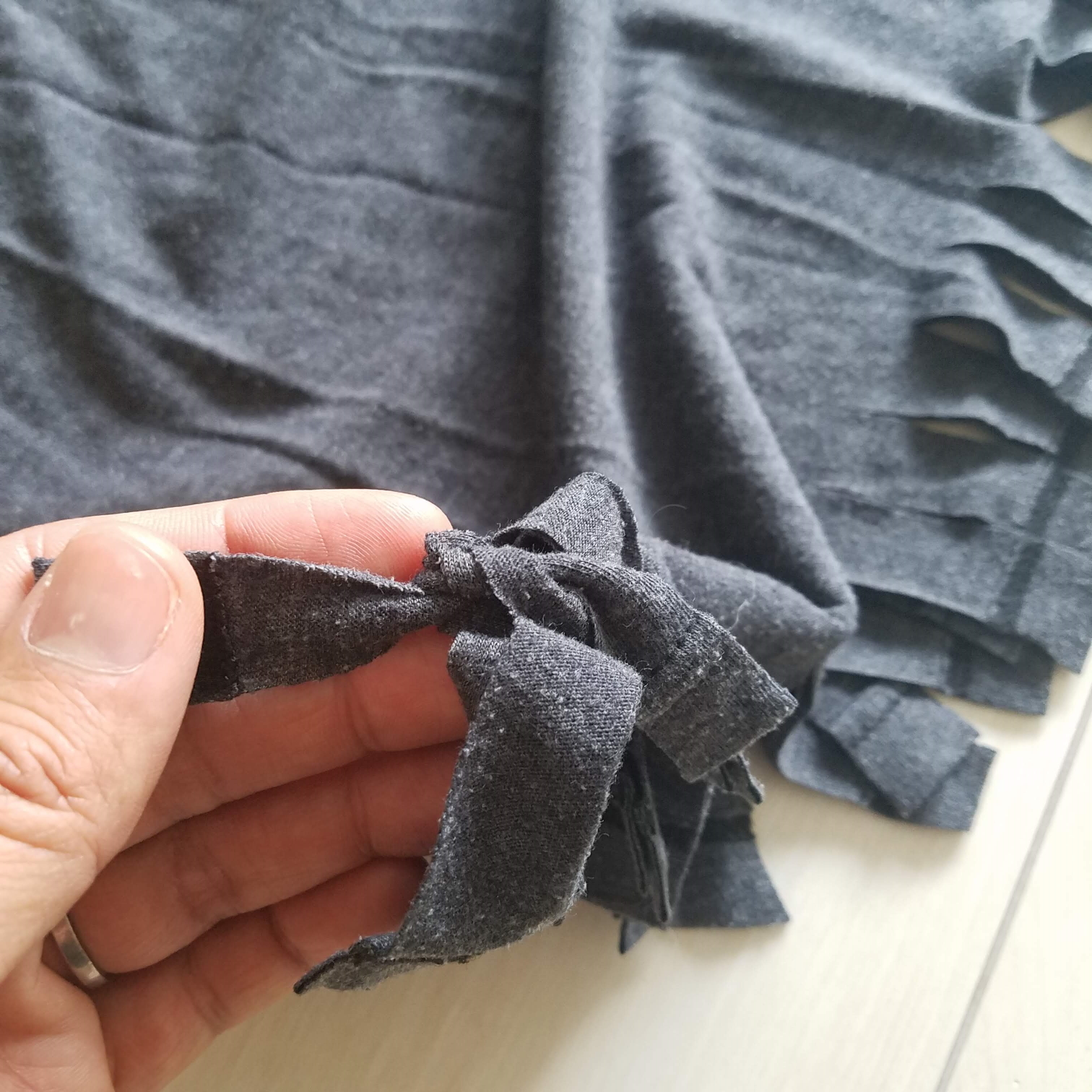 Step 6: Tie "neighbor tassels" together to close the gaps. NOW knot them well!