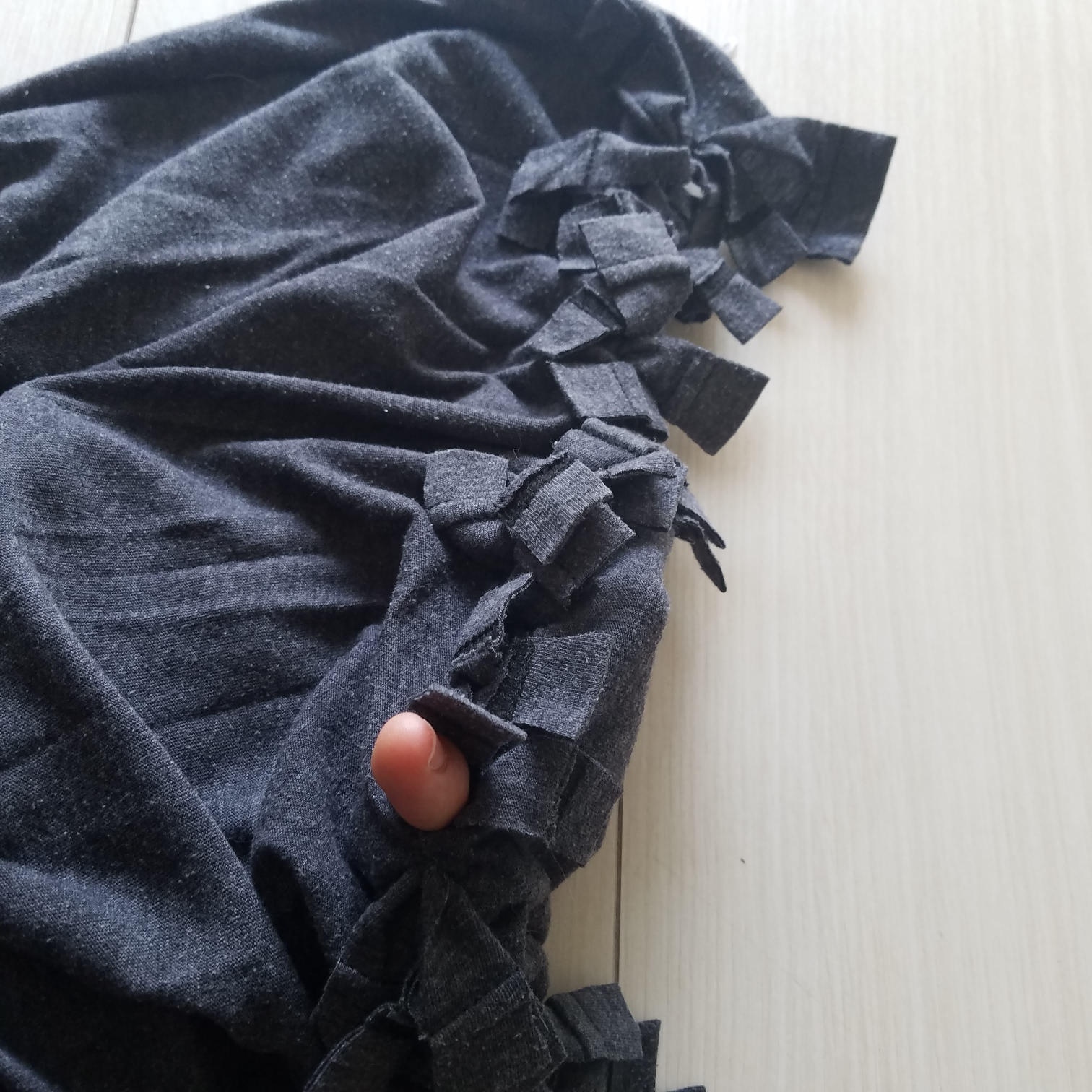 Step 5: Tie the cut tassels together. No need to knot yet! Just one tie.