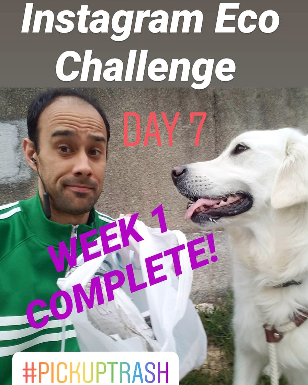 I take her for a walk through the neighborhood, to the river, or to the local park every day, so there was no shortage of trash for me to pick up. Also, to force myself not to miss a day, I added an additional challenge: log the trash I pick up on Instagram.